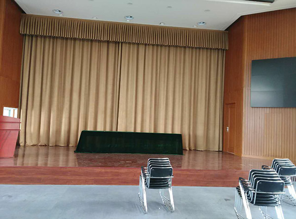 大幕的颜色和面料可直接影响观众的视觉,要求庄重而典雅。采用金丝绒带本色衬里做面料,通过三折一的艺术制作,给观众以强烈的立体感。